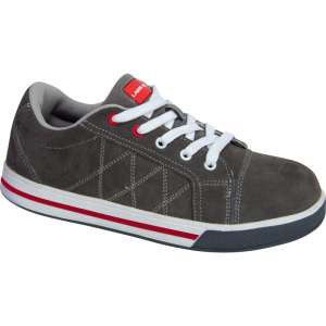 Buty męskie wykonane zostały z trwałej i wytrzymałej na odkształcenia skóry zamszowej w kolorze szarym z elementami w kolorze czerwonym. Podnosek buta jest stalowy i zabezpiecza palce stopy przed uderzeniem z energią 200 J i ściskaniem równym sile 15kN. Środek butów jest wyściełany miłą w dotyku dzianiną. Wyściółka buta jest wymienna. Buty są sznurowane i sięgają przed kostkę. Podeszwa jest wykonana z gumy i znakomicie izoluje stopę od podłoża. Dodatkowo podeszwa odporna jest na poślizg na posadzce ceramicznej oraz odporna jest na olej napędowy. Buty nadaje się przy pracach magazynowych (transport i przeładunek), a także dla mechaników i operatorów maszyn i urządzeń. Buty są lekkie i wygodne oraz zapewniają duży komfort użytkowania. Modny ponadczasowy wzór sprawia, że mogą służyć na co dzień.