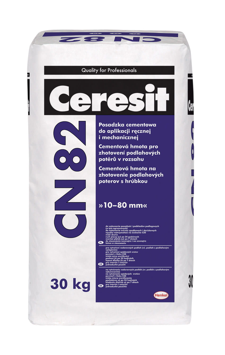 Ceresit CN 82 służy do wykonywania podkładów podłogowych: – związanych z podłożem cementowym, grubości od 10 do 80 mm, – na warstwie oddzielającej (np. folii, papie), grubości od 35 do 80 mm, – „pływających” na warstwie izolacji termicznej lub akustycznej, grubości od 45 do 80 mm. – z ogrzewaniem wodnym, grubości od 45 do 80 mm. Minimalną grubość 45 mm należy zwiększyć o zewnętrzną średnicę przewodów ogrzewania. Przeznaczona jest do wykonywania posadzek w garażach indywidualnych, pomieszczeniach gospodarczych, piwnicach, w mieszkaniach, w obiektach użyteczności publicznej takich jak: szkoły, przedszkola, biura, szpitale, itp. Zaprawą można dokonywać napraw posadzek i elementów betonowych. Może być stosowana do wykonywania warstw spadkowych i dociskowych na balkonach i tarasach. Zaprawa wymieszana z wodą ma konsystencję gęstoplastyczną, pozwalającą na formowanie spadków. Można z niej wykonywać posadzki niezbrojone lub zbrojone, wewnątrz i na zewnątrz budynków. Jastrych z zaprawy CN 82 może służyć jako podkład pod płytki ceramiczne, panele, deski podłogowe nie związane z podłożem lub pod posadzki z zapraw samopoziomujących lub rozlewnych Ceresit.