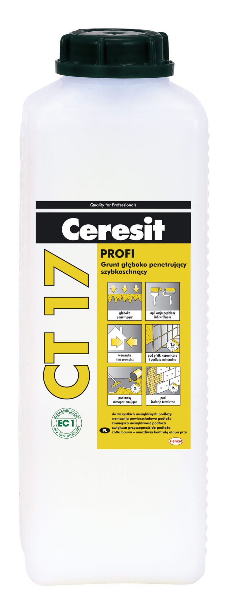Preparat Ceresit CT 17 służy do gruntowania podłoży (ścian, podłóg, sufitów) wewnątrz i na zewnątrz budynków przed mocowaniem płytek ceramicznych, wylewaniem posadzek, mocowaniem wykładzin podłogowych, tapetowaniem, szpachlowaniem, malowaniem czy mocowaniem płyt izolacji termicznej. Grunt nie zawiera rozpuszczalnika. Zagruntowane CT 17 podłoża (wszelkiego rodzaju tynki, betony, jastrychy, podkłady z ogrzewaniem podłogowym) mają mniejszą nasiąkliwość, co zapobiega zbyt szybkiemu przesychaniu zapraw klejących, posadzek, szpachlówek czy farb. Preparat wnika w podłoże i wiąże ziarna kruszywa, nie powoduje jednak zwiększania parametrów wytrzymałościowych w całym przekroju podłoża. Stosowanie CT 17 szczególnie zalecane jest na podłoża gipsowe, anhydrytowe i gazobetonowe. Jest on odpowiedni także do gruntowania płyt wiórowych i nieimpregnowanych płyt gipsowo-kartonowych. Preparat powoduje żółtawe zabarwienie podłoży. Do gruntowania podłoży pod tynki cienkowarstwowe stosować farbę gruntującą Ceresit CT 16 lub CT 15.