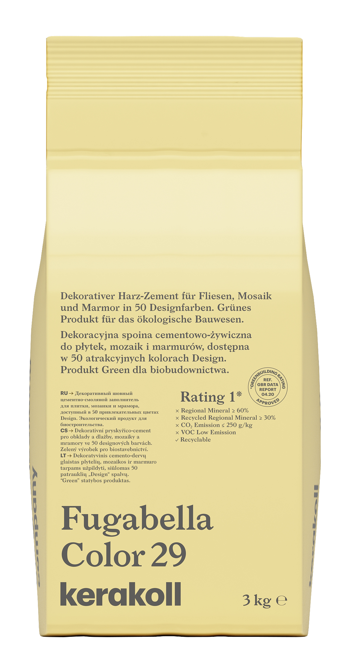 Fugabella® Color jest rewolucyjną, hybrydową spoiną dekoracyjną do wszelkich powierzchni z gresu, mozaik i kamieni naturalnych. Fugabella® Color charakteryzuje się hydrofobowością, niezwykle niską chłonnością wody, wysoką twardością powierzchni, podwyższoną odpornością na najczęściej spotykane substancje kwasowe i całkowitą jednorodnością koloru.