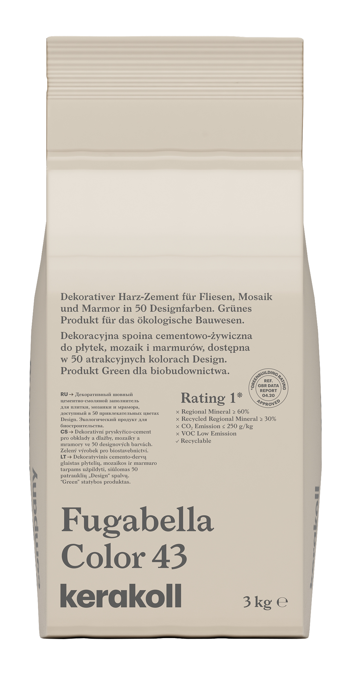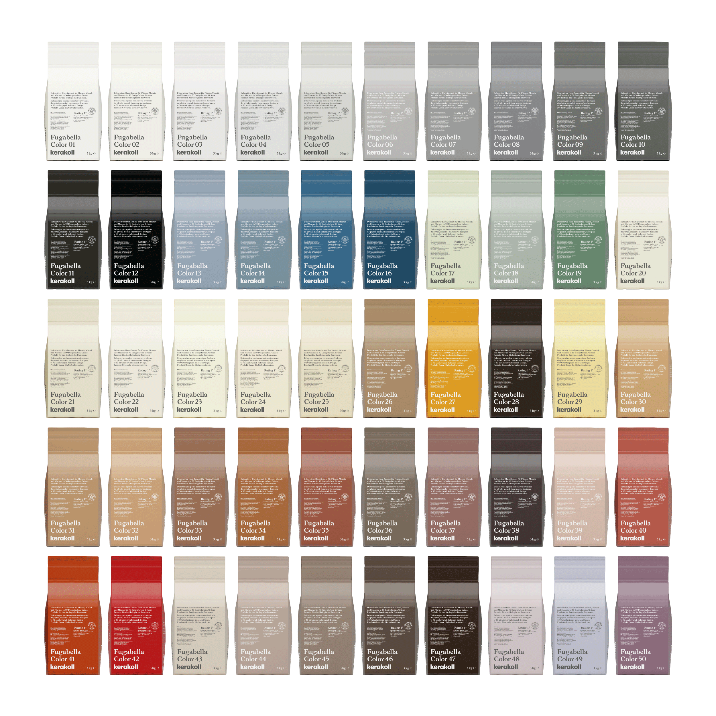 Fugabella® Color jest rewolucyjną, hybrydową spoiną dekoracyjną do wszelkich powierzchni z gresu, mozaik i kamieni naturalnych. Fugabella® Color charakteryzuje się hydrofobowością, niezwykle niską chłonnością wody, wysoką twardością powierzchni, podwyższoną odpornością na najczęściej spotykane substancje kwasowe i całkowitą jednorodnością koloru.