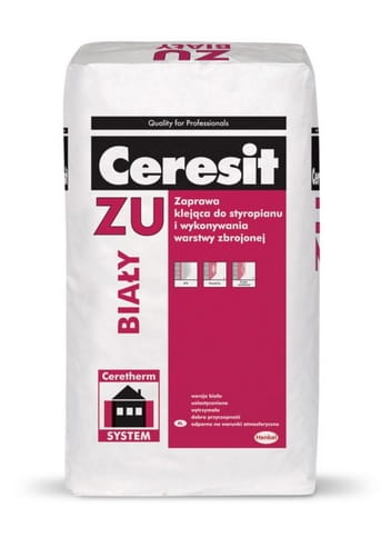 Zaprawa Ceresit ZU biały służy do ocieplania ścian zewnętrznych budynków metodą lekką-mokrą z zastosowaniem płyt styropianowych. Jest składnikiem złożonych systemów ocieplania ścian zewnętrznych (ETICS) budynków Ceresit Ceretherm. Zaprawa Ceresit ZU biały stosowana jest zarówno do mocowania płyt styropianowych, jak i do wykonywania warstwy zbrojonej siatka przy ocieplaniu budynków nowo wznoszonych, jak i poddawanych termomodernizacjii.