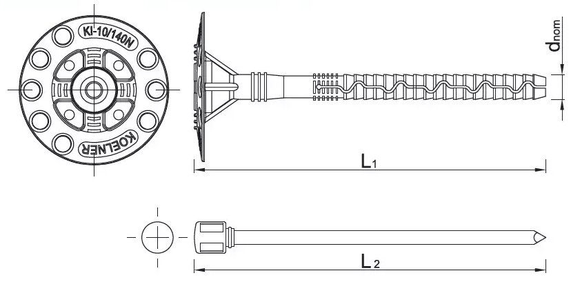 - Redukcja punktowej przenikalności termicznej łącznika (0,003W/K) dzięki zastosowaniu tworzywowego obtrysku trzpienia stalowego z wysoko udaroodpornego nylonu