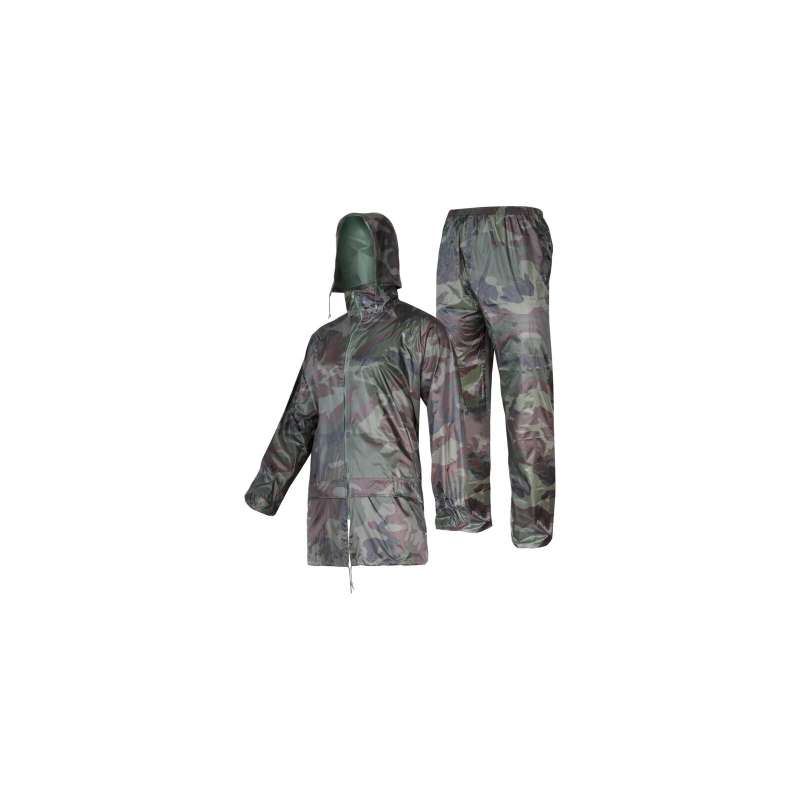 Idealny komplet przeciwdeszczowy na grzyby, rower, czy deszczowe dni. Kurtka przeciwdeszczowa oraz spodnie przeciwdeszczowe wykonane z PVC oraz poliestru. Zestaw posiada wodoodporne szwy. Otwory wentylacyjne pod pachami i na plecach peleryny zwiększają cyrkulację powietrza. Wodoodporny kaptur z regulacją można schować w kołnierzu zamykanym na suwak. Mankiety płaszcza zakończone wewnętrznym, elastycznym ściągaczem, chronią przed wiatrem i wodą. Regulacja szerokości u dołu kurtki za pomocą ściągacza. Spodnie posiadają regulacje szerokości w pasie za pomocą ściągacza. Szerokości nogawek reguluje się za pomocą nap. Dwie kieszenie zewnętrzne z otworami bocznymi umożliwiającymi dostęp. Komplety przeciwdeszczowe w kolorze moro Lahti Pro L41408 posiadają deklarację CE oraz zgodne są z normą EN ISO 13688.