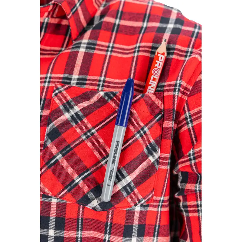 Koszula flanelowa Lahti Pro L41803 wykonana ze stu procentowej bawełny o gramaturze 170g/m2. Na lewej piersi znajduje się kieszeń. Koszula zapinana na guziki. Odzież znajduje się w pierwszej kategorii środków ochrony indywidualnej. Posiada deklarację zgodności CE i spełniają postanowienia normy EN ISO 13688.