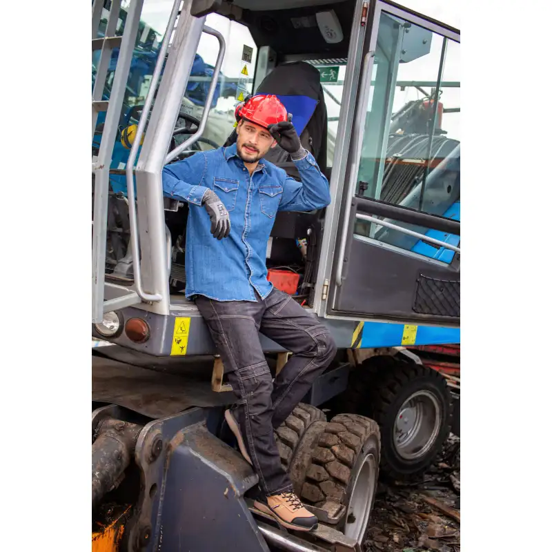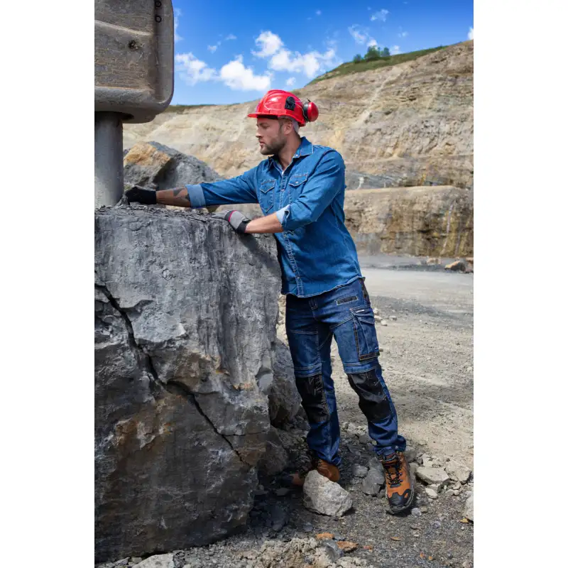 Koszula jeansowa Lahti Pro L41811 wykonana z tkaniny o gramaturze 320g/m2 (bawełna 76%, poliester 23%, elastan 1%). Koszula zapinana na wysokiej jakości napy YKK. Dodatkowo posiada dwie zamykane kieszenie na piersi. Odzież znajduje się w pierwszej kategorii środków ochrony indywidualnej. Posiada deklarację CE i spełniają postanowienia normy EN ISO 13688.
