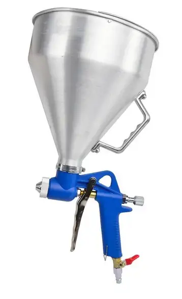 Pistolet do malowania tynków z aluminiowym zbiornikiem o pojemności 4,5 litra.