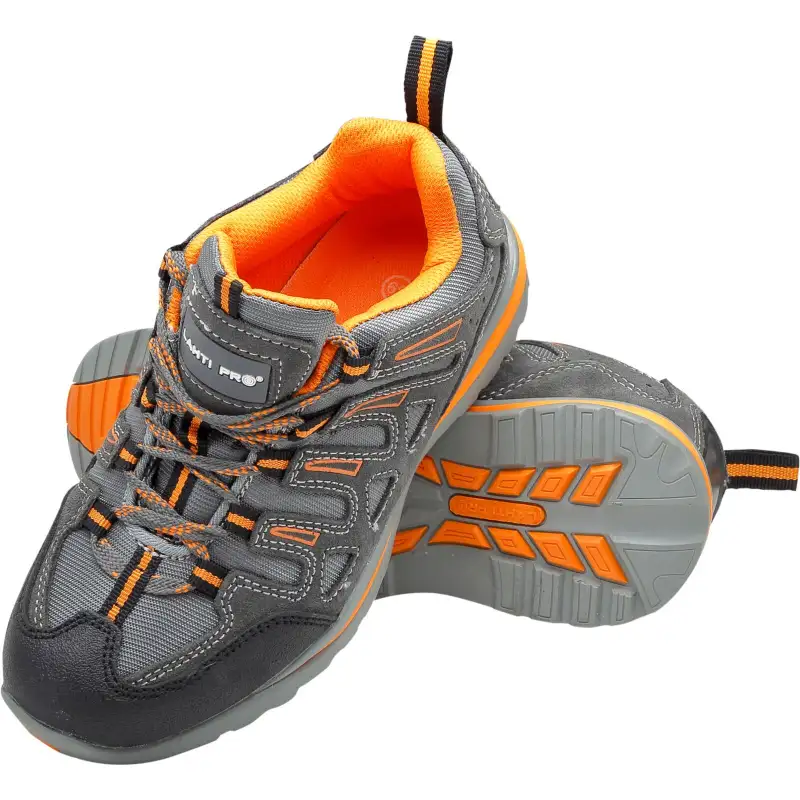 Buty z najnowszej kolekcji LahtiPro. Wierzch obuwia wykonany ze skóry nubukowej oraz dzianiny siatkowej. Podszewka wykonana z dzianiny siatkowej. Wyściółka wymienna. Buty nie posiadają elementów metalowych oraz nie mają podnoska. Podeszwa gumowa o nowoczesnej linii wzorniczej oraz głęboki protektor zapewniają wysoką stabilność obuwia podczas chodzenia. Obuwie posiada certyfikat CE oraz normę ISO 20347:2011. Buty posiadają kategorię bezpieczeństwa OB FO która mówi o tym że obuwie posiada podeszwę odporną na olej napędowy jak również odporność na poślizg na podłożu ceramicznym pokrytym roztworem laurylosiarczanu sodu (SLS).