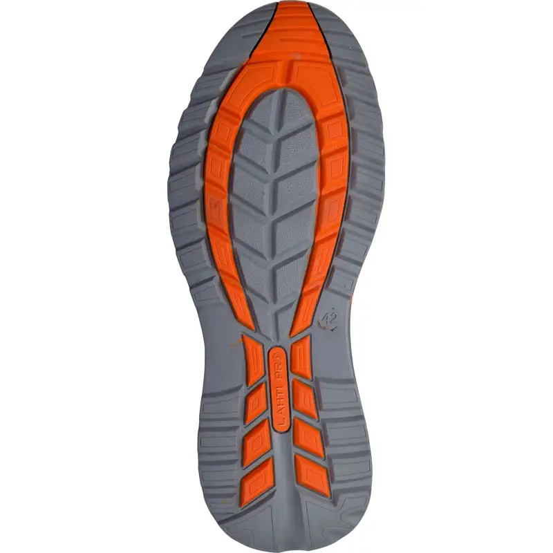 Buty z najnowszej kolekcji LahtiPro. Wierzch obuwia wykonany ze skóry nubukowej oraz dzianiny siatkowej. Podszewka wykonana z dzianiny siatkowej. Wyściółka wymienna. Buty nie posiadają elementów metalowych oraz nie mają podnoska. Podeszwa gumowa o nowoczesnej linii wzorniczej oraz głęboki protektor zapewniają wysoką stabilność obuwia podczas chodzenia. Obuwie posiada certyfikat CE oraz normę ISO 20347:2011. Buty posiadają kategorię bezpieczeństwa OB FO która mówi o tym że obuwie posiada podeszwę odporną na olej napędowy jak również odporność na poślizg na podłożu ceramicznym pokrytym roztworem laurylosiarczanu sodu (SLS).