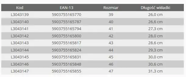 Podszewkę buta roboczego wykonano z dzianiny siatkowej, obuwie posiada wymienną wkładkę. Podeszwa obuwia gumowa o właściwościach antypoślizgowych na podłożu stalowym i ceramicznym, odporna na olej napędowy. Zastosowany głęboki protektor zapewnia wysoką stabilność obuwia i komfort chodzenia. W butach roboczych Lahti Pro L30431 zastosowano kompozytowy podnosek oraz polimerową, niemetalową i elastyczną wkładkę antyprzebiciową, obuwie posiada właściwości antyelektrostatyczne. Półbuty robocze Lahti Pro L30431 posiadają absorpcja energii w części piętowej i zabudowaną pięte. Ograniczona przepuszczalność i absorpcja wody. Obuwie nie zawiera elementów metalowych. Obuwie posiada kategorię bezpieczeństwa S3 SRC i spełnia postanowienia normy EN ISO 20345:2011. Półbuty marki Lahti Pro L30431 posiadają deklaracje CE, produkt znajduje się w drugiej kategorii środków ochrony indywidualnej.