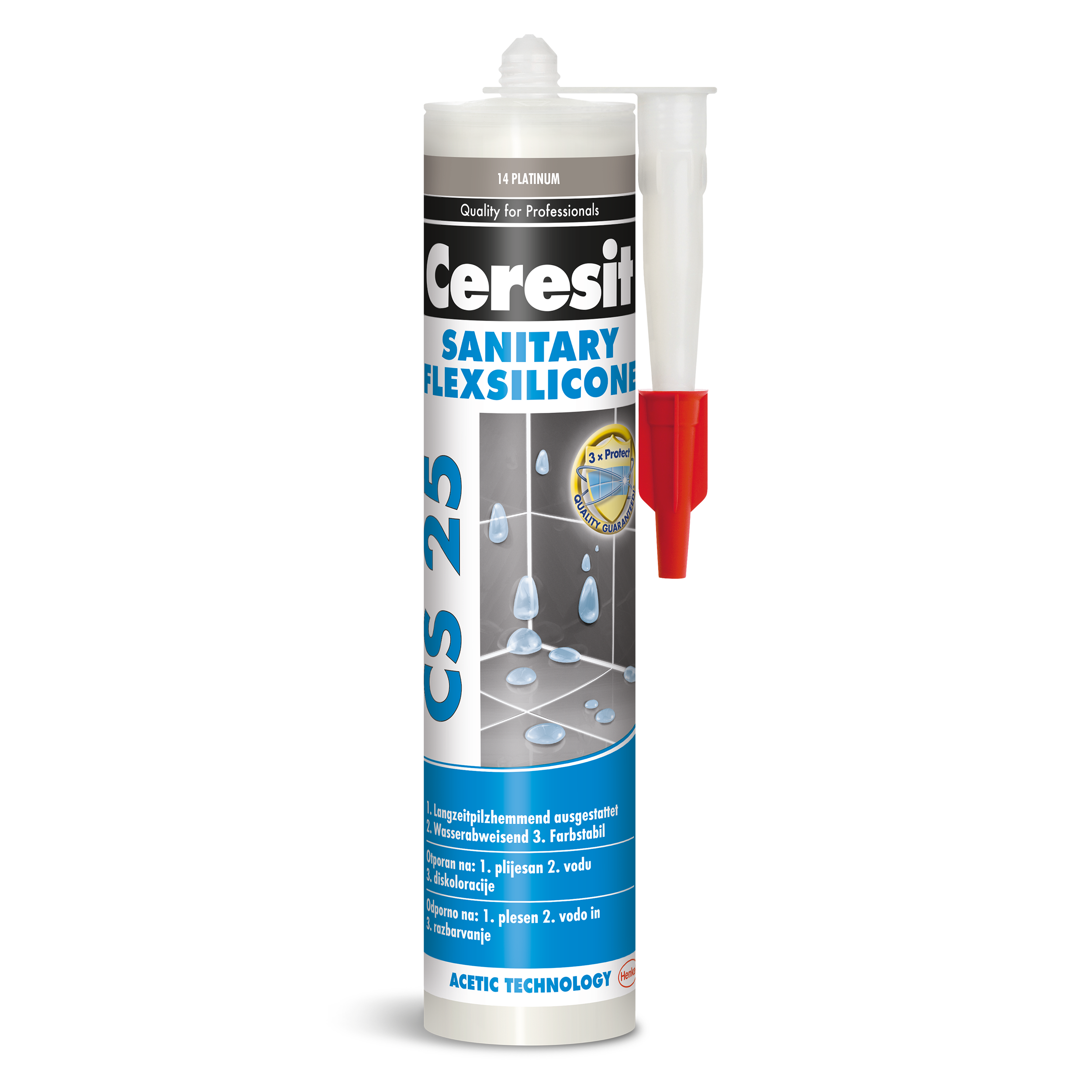 Nowa formuła CS 25 MICROPROTECT zawiera substancje czynne, które blokują rozwój grzybów i pleśni na 3 sposoby: minimalizują możliwość powstawania zarodników pleśni, hamują ich wzrost oraz możliwość rozprzestrzeniania się. Zapewnia to długotrwałą ochronę przeciwko grzybom i pleśni, a zawarte w silikonie substancje grzybobójcze powodują, że spoiny na których nie zatrzymuje się woda pozostają czyste i lśniące.